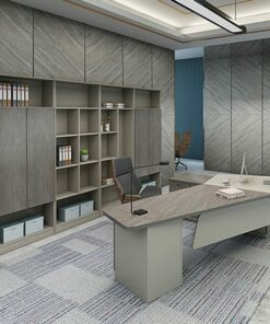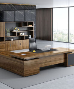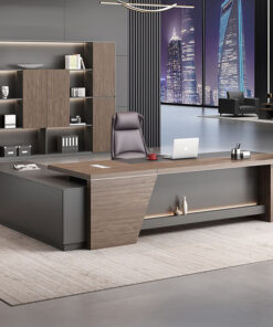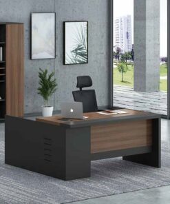 Bàn giám đốc hiện đại Royal ROY-23 2m4 được làm bằng ván gỗ sợi cao cấp phủ melamine, có vân gỗ sang trọng. Mặt bàn hình chữ nhật. Có tủ phụ đi kèm, thường được dùng cho lãnh đạo: trưởng phòng, giám đốc,.…thuộc dòng bàn cao cấp của Nội thất Bananas Case.